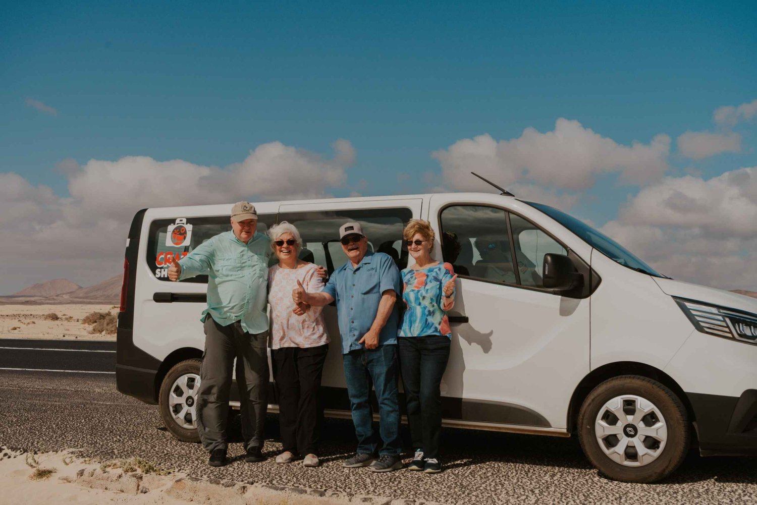 Vi anbefaler at medbringe solbriller, og for dem med langt hår, noget at binde det op med (Fuerteventura er en blæsende ø).