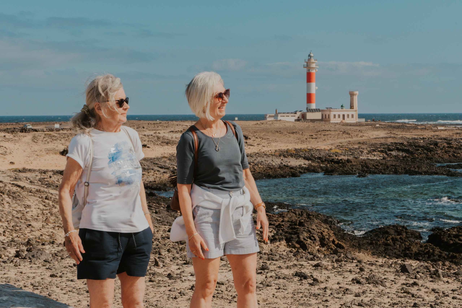 Stop ved det charmerende El Cotillo Fyrtårn og Castillo del Tostón, med udsigt over klipper og endeløse strande.