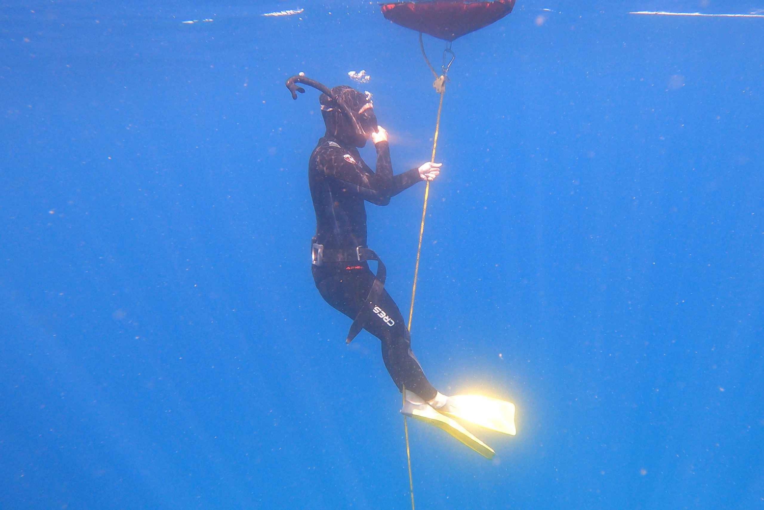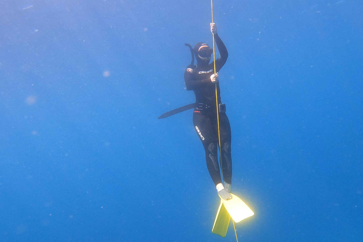 Bliv trænet af din guide, der tilpasser sig dine behov, så denne oplevelse bliver en af de bedste i dit liv. Nyd øjeblikket og tag hjem med utrolige minder og fantastiske 4K-videoer. Vores introduktion til fridykning er designet til begyndere og/eller personer, der allerede har erfaring, men som gerne vil føle sig mere trygge. Vi tager dig trin for trin uden pres på tid eller resultater og lærer dig de grundlæggende principper i fridykning, som du kan bruge resten af dit liv. Vi starter rejsen med nogle afslappende og vejrtrækningsøvelser, inden vi introducerer dig til statisk vejrtrækning i det lave vand ved en naturligt beskyttet strand. Når du har lært at holde vejret længere og mere komfortabelt, tager vi dig med til vores træningsbøje og lærer dig at udligne trykket i ørerne og dykke lodret. De fleste deltagere tror, at de ikke vil være i stand til at dykke ned på grund af deres ører, men mindre end 1 % af befolkningen har faktisk et fysiologisk problem. At udligne trykket i ørerne er en teknik, som vi vil lære dig. Føl dig fri og oplev den unikke fornemmelse af at være flere meter under vandet og holde vejret. Velvære og følelsen af vægtløshed vil slappe dig af og få dig til at koble af fra din travle hverdag.