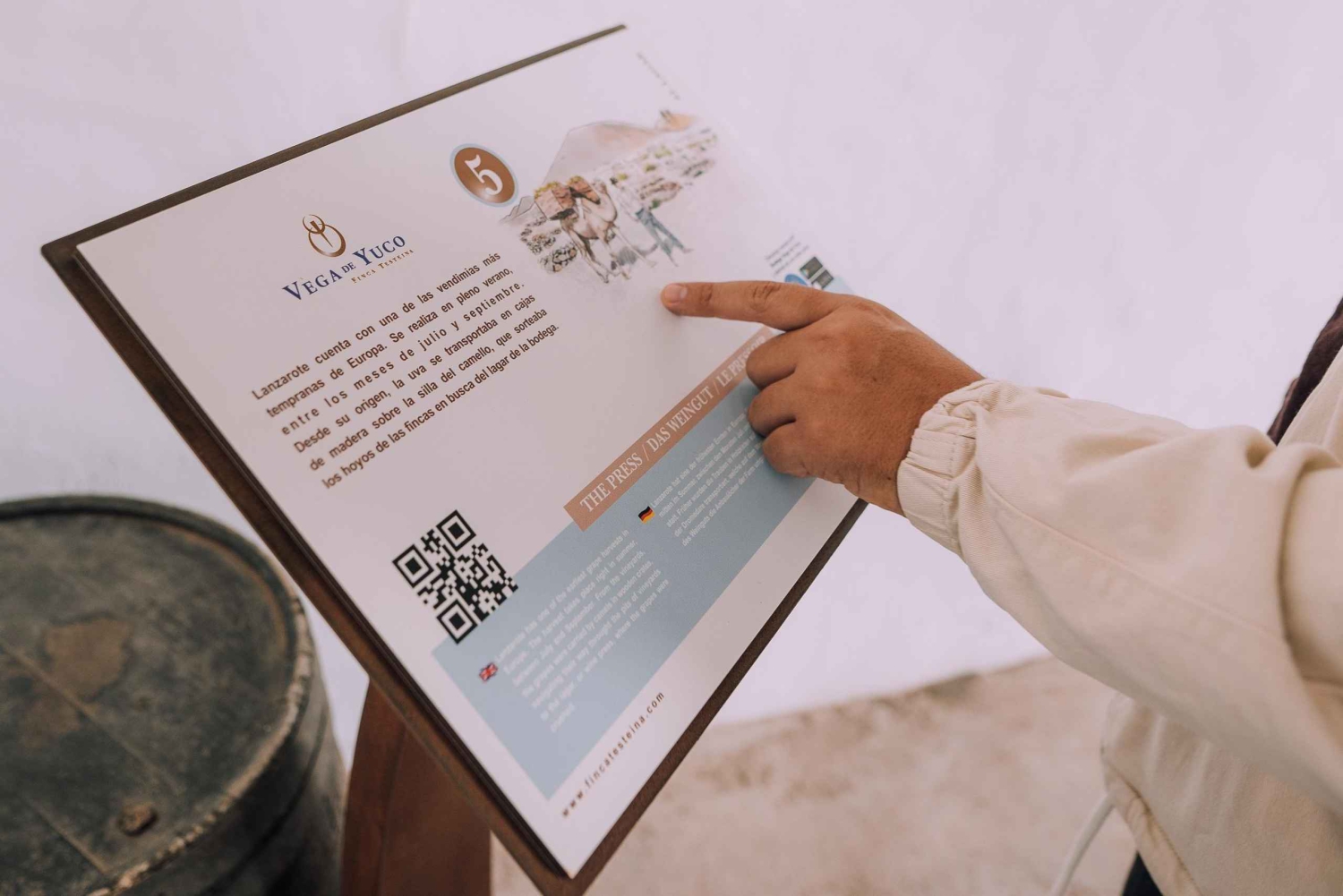 Inkluderet: - Guidet tur med fortælling. - Vinsmagning med kommentarer af 3 vine fra Bodegas Vega de Yuco. - Ostemadning med oste fra Lanzarote. - Samlet varighed: ca. 70 minutter.