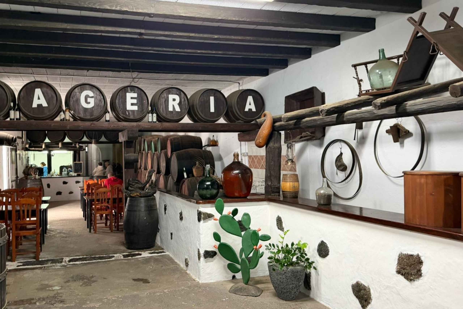 Stop ved en traditionel lokal vingård, der ligger i rustikke og autentiske omgivelser. Nyd en lille smagsprøve på lokal hjemmelavet vin som en høflighed, serveret i en reduceret mængde. Dette stop er tænkt som en afslappet og uformel pause, snarere end en formel eller teknisk vinsmagning. Vingården har en lille terrasse med udsigt over vinmarkerne og det vulkanske landskab, toiletfaciliteter og fritid for dem, der ønsker at købe vin, bestille et ekstra glas eller nyde noget mad.
