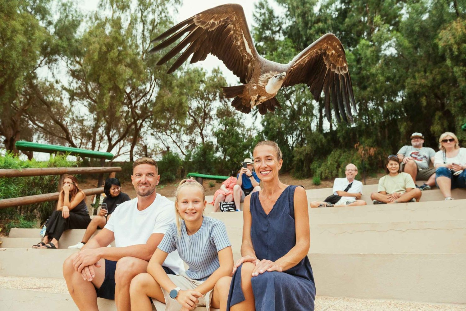 Tutustu puiston teema-alueisiin ja tapaa upeita eläimiä, kuten pingviinejä, valkotiikereitä, ilveksiä ja flamingoja. Älä missaa jännittävää delfiinien esittelyä, jossa voit oppia lisää näistä uskomattomista eläimistä, tai petolintujen esittelyä, jossa on majesteettisia kotkia, haukkoja ja raadonsyöjiä lennossa.