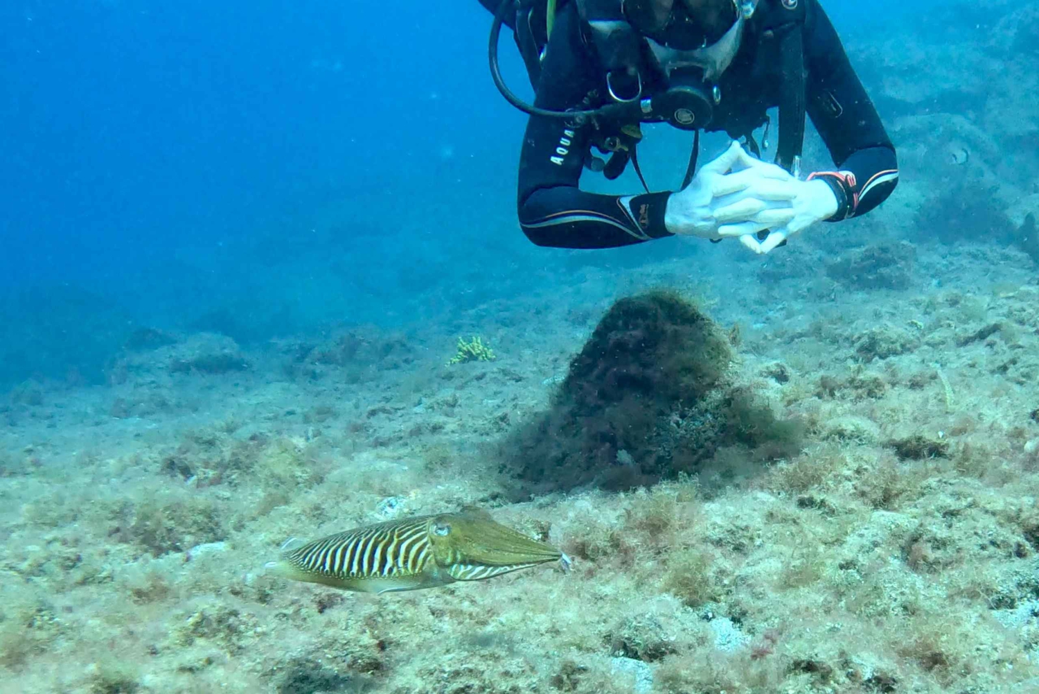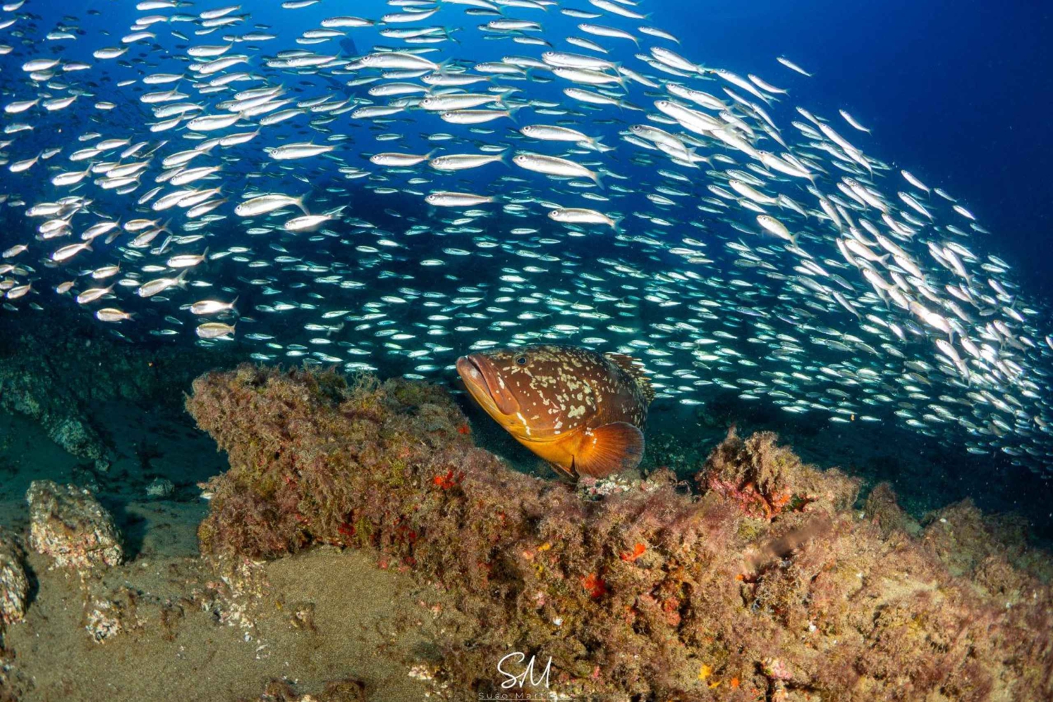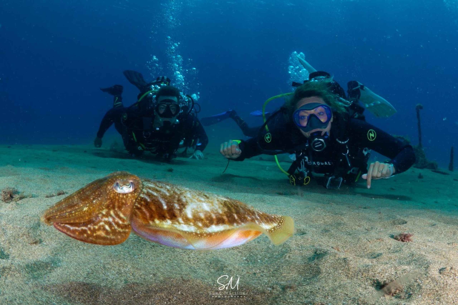 Når forklaringen er over, velger vi ut det dykkerutstyret som passer best for deg. Etterpå kjører vi med varebil til dykkestedet, som ligger bare 500 meter unna. På Playa Chica dykker du i krystallklart vann ned til 6 meters dybde på det første dykket og opp til 12 meter på det andre dykket, der du kan nyte det marine livet: fiskestimer, sjøstjerner, blekksprut, blekksprut og, hvis du er heldig, kanskje til og med en skilpadde!