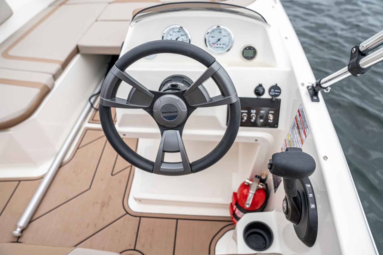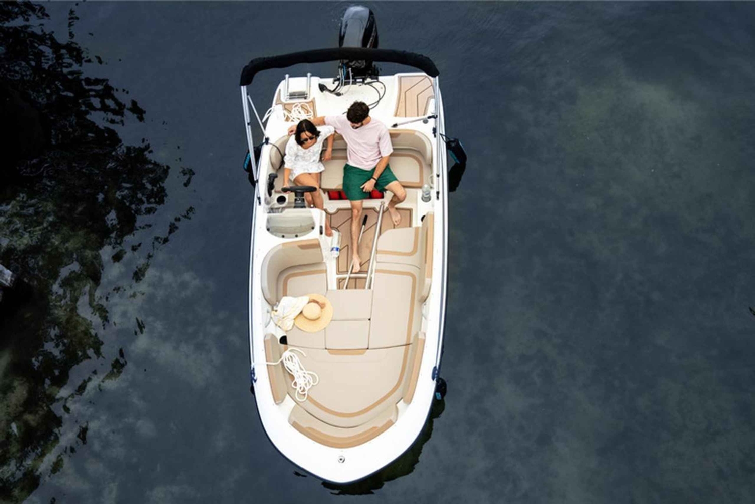 Fuel's on us The 475 aXess is a compact open-bow boat that can fit up to five people, with built-in speakers, a fridge, a bimini top, and a sundeck for enjoying the beaches of Papagayo.